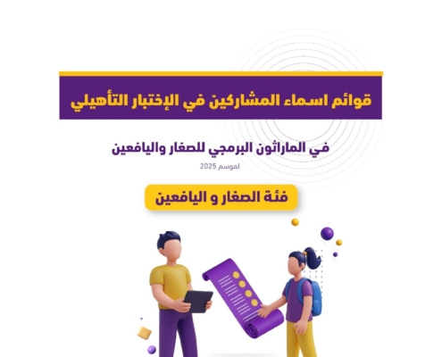 قوائم أسماء الطلاب المتأهلين للاختبار التأهيلي للماراثون البرمجي للصغار واليافعين