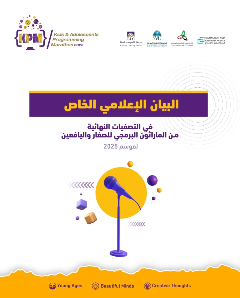 https://dca-net.org/wp-content/uploads/2025/11/IMG-20251108-WA0002.jpg16001292media-office-Dcahttps://dca-net.org/wp-content/uploads/2020/09/Logo.pngmedia-office-Dca2025-11-20 14:46:202025-11-20 14:46:20البيان الإعلامي الخاص في التصفيات النهائية للماراثون البرمجي للصغار واليافعين لموسم ٢٠٢٥