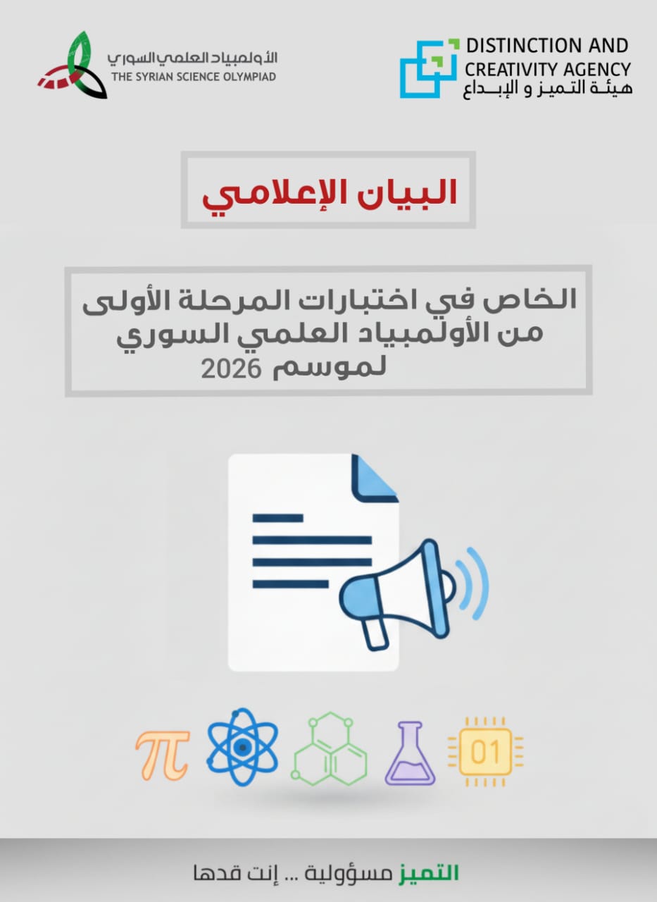 البيان الإعلامي الخاص في اختبارات المرحلة الأولى للأولمبياد العلمي السوري 2025-2026