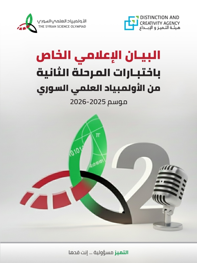 البيان الإعلامي الخاص باختبارات المرحلة الثانية من منافسات الأولمبياد العلمي السوري لموسم 2025-2026.