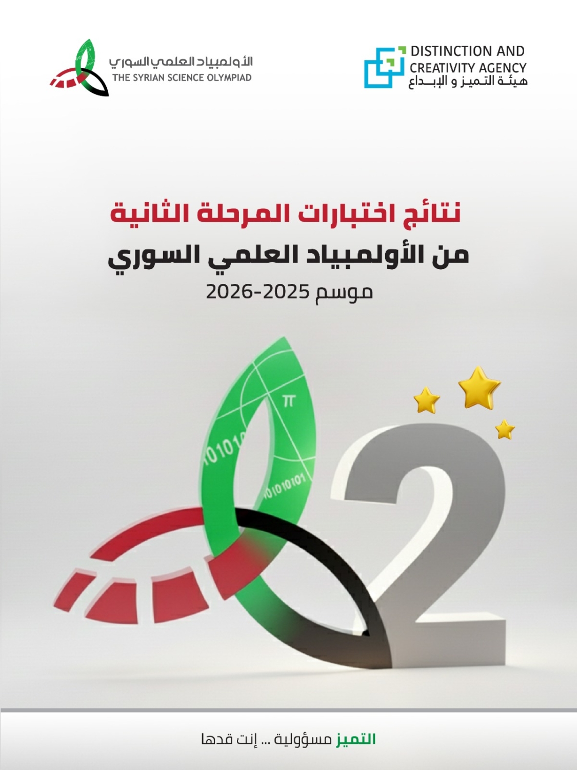 تُعلن هيئة التميز والإبداع عن نتائج المرحلة الثانية من الأولمبياد العلمي السوري لموسم 2026، بعد منافسة علمية قوية عكست روح التحدي والطموح لدى طلابنا المتميزين.