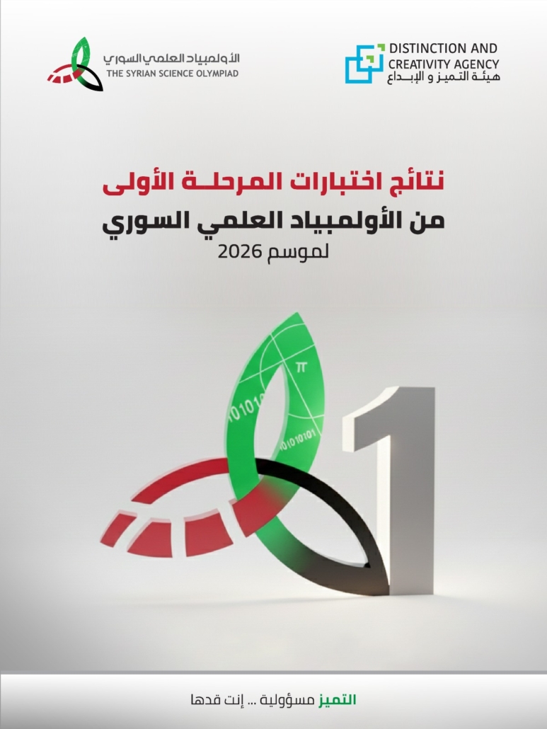 تعلن هيئة التميّز والإبداع عن نتائج اختبارات المرحلة الأولى من منافسات الأولمبياد العلمي السوري لموسم ٢٠٢٦، والذي أقيم بتاريخ ١٥ تشرين الثاني في جميع المحافظات السورية، بمشاركة واسعة من الطلاب المتميزين الذين خاضوا هذه المرحلة تمهيداً للانتقال إلى مراحل المنافسة القادمة.